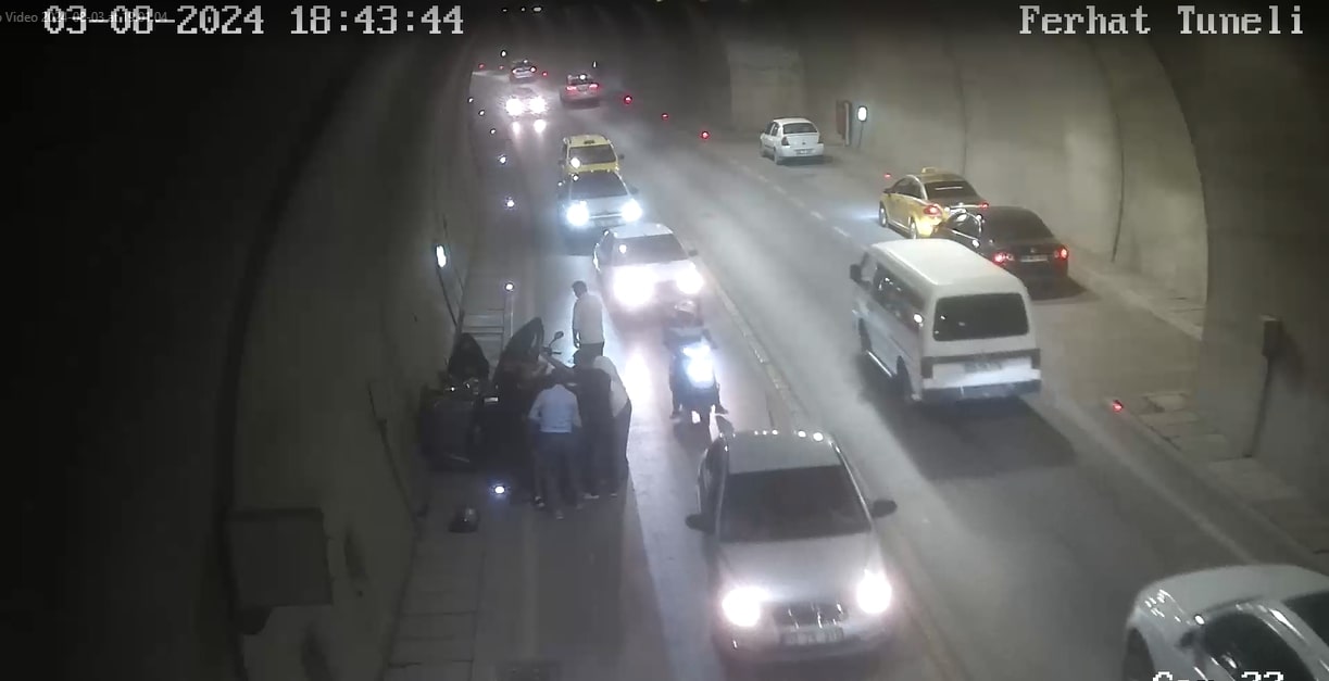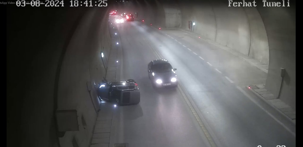 Tünelde elektrikli otomobilin duvara çarpıp devrildiği kaza kamerada